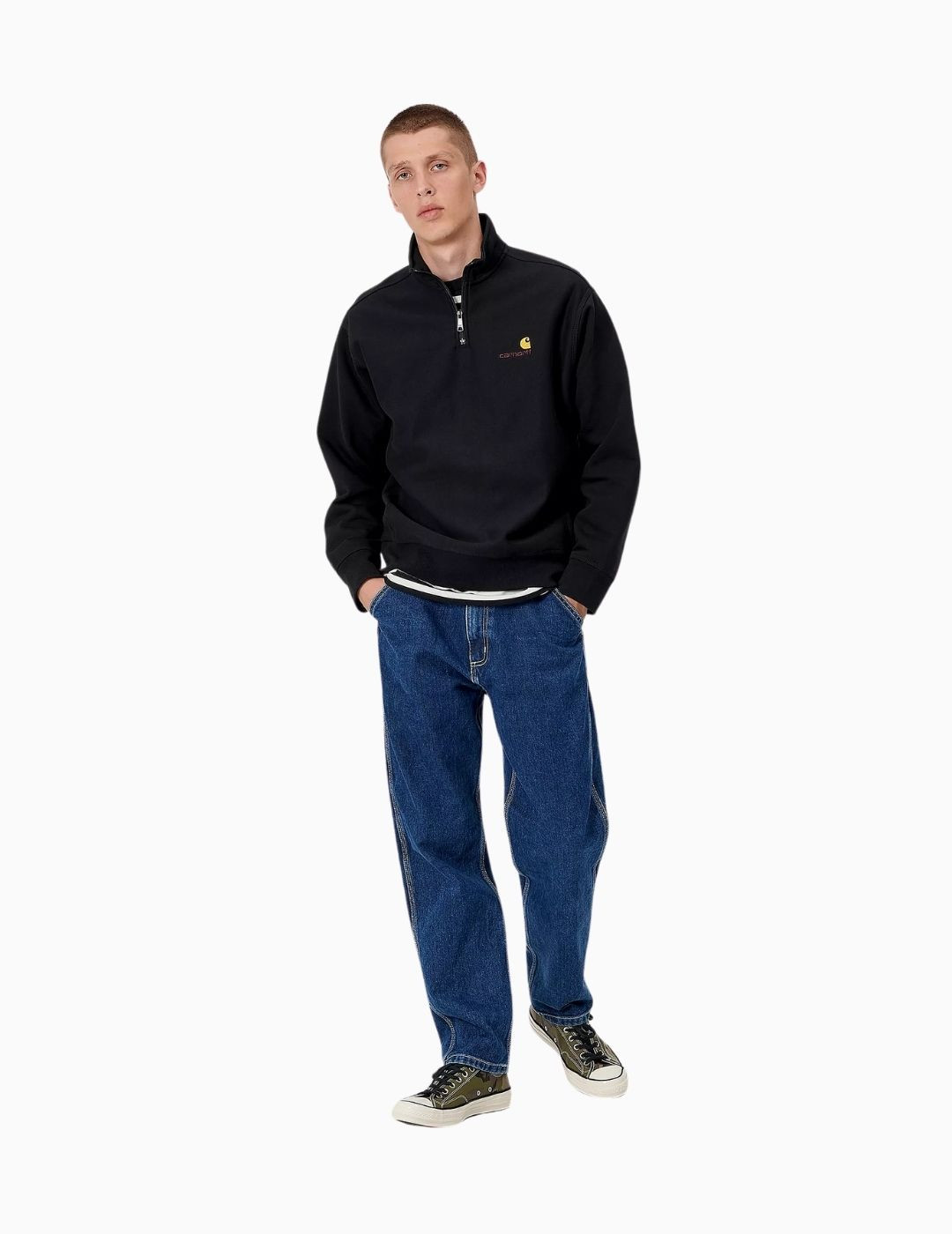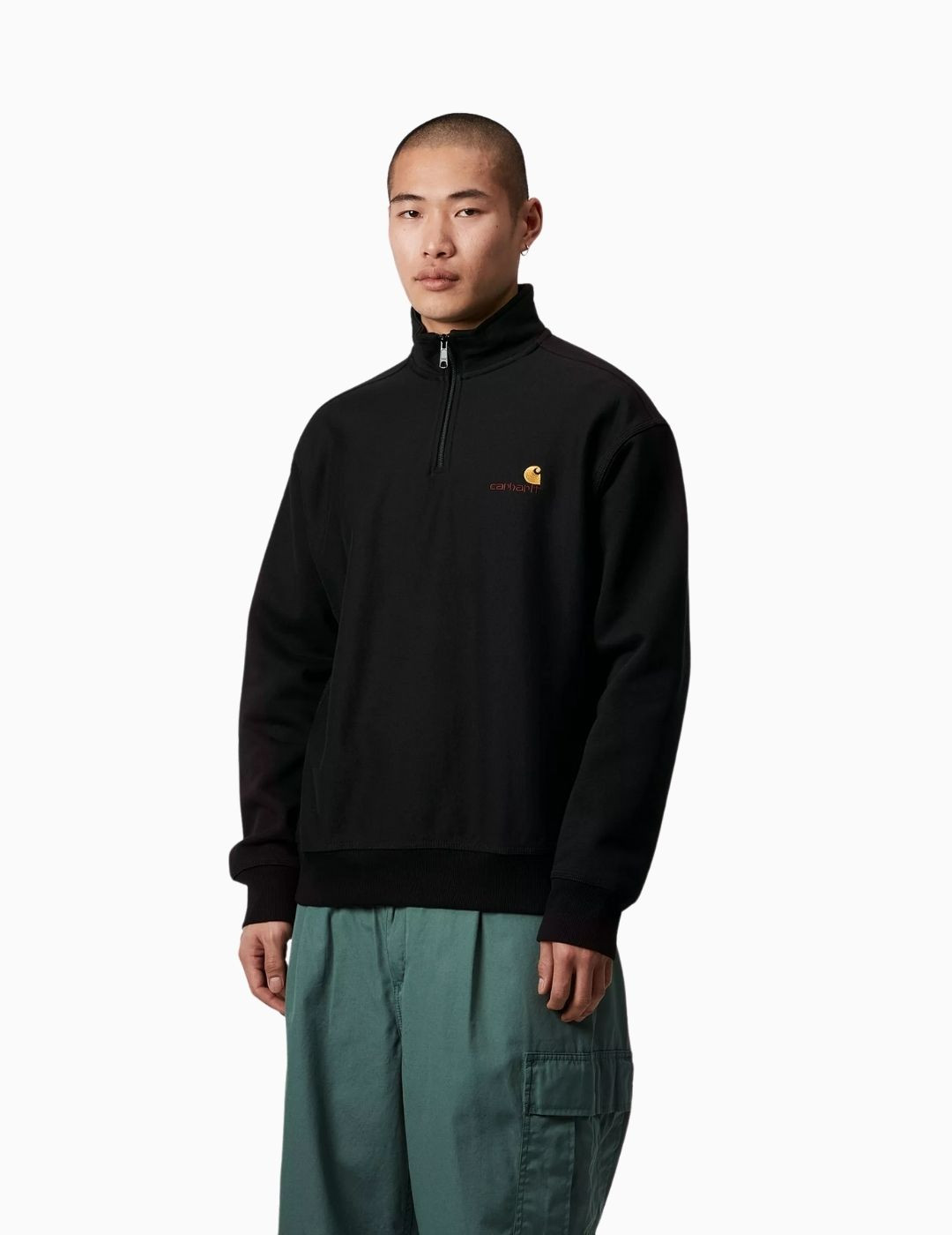 Sudadera Carhartt Wip Half Zip American Script Sweat Black