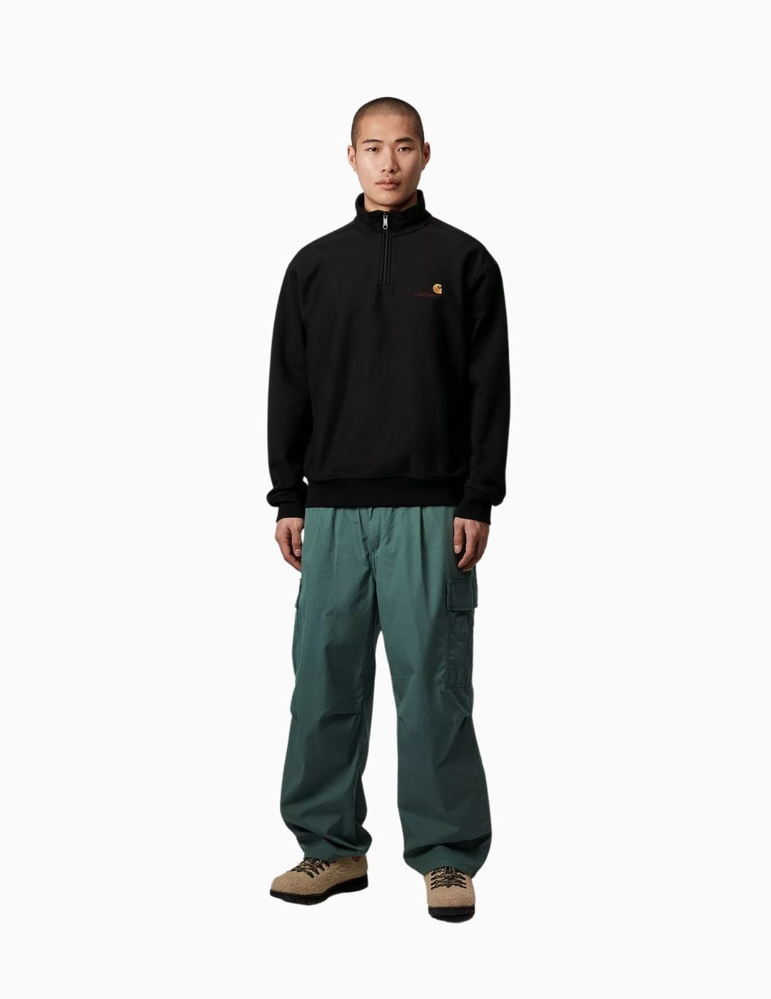 La Half Zip American Script Sweatshirt está confeccionada con una mezcla de algodón y poliéster de 12,3 onzas peinado para mayor suavidad y calidez sin perder transpirabilidad. La prenda incluye cuello alto con cremallera y un pequeño logotipo. Con una silueta amplia y holgada.