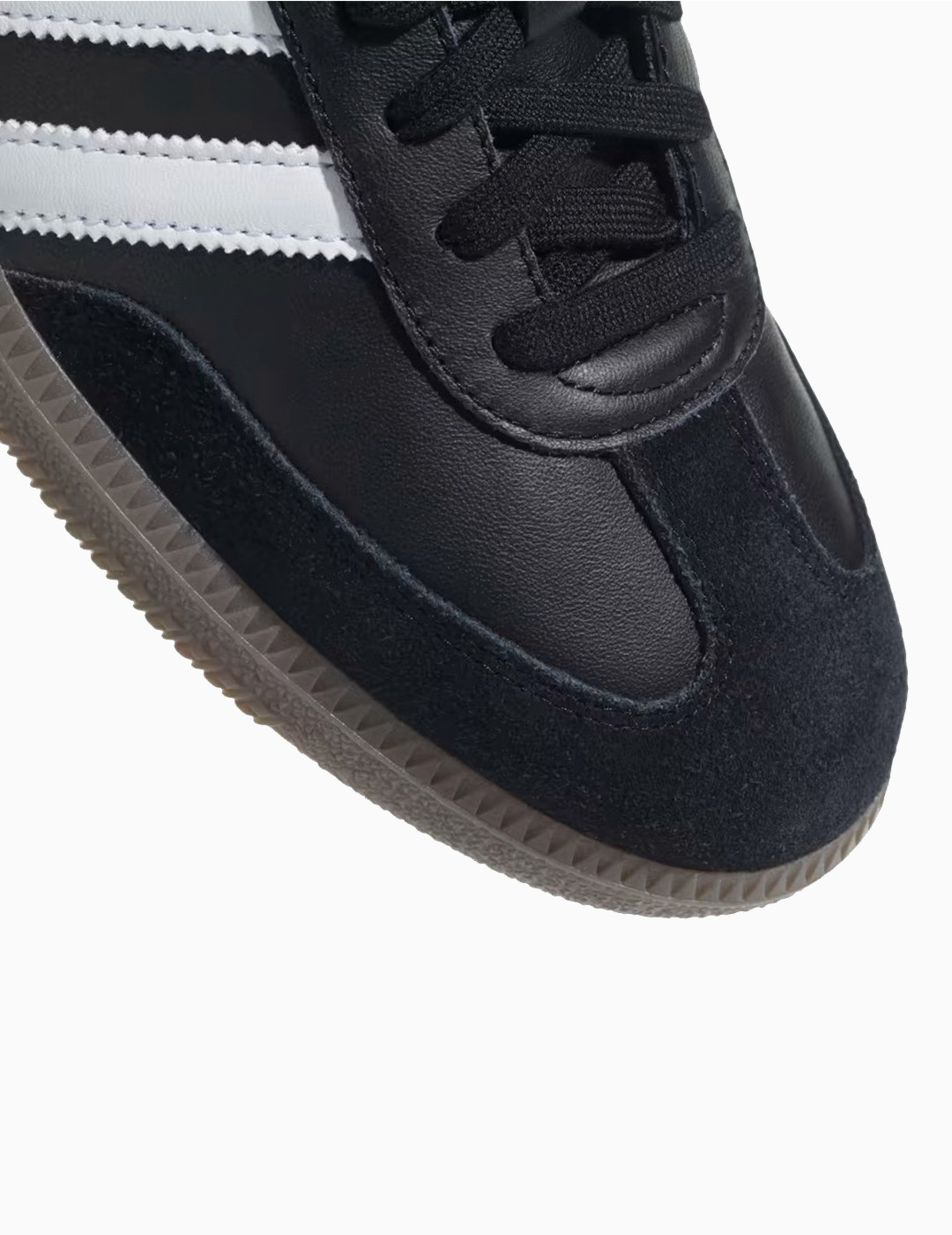 Nacida en los campos de fútbol, la Samba es un icono atemporal del estilo urbano. Fiel a su legado, la Samba presenta una elegante silueta de perfil bajo, una parte superior de piel suave, refuerzos de ante y suela de goma, lo que la convierte en una zapatilla imprescindible dentro y fuera del terreno de juego.