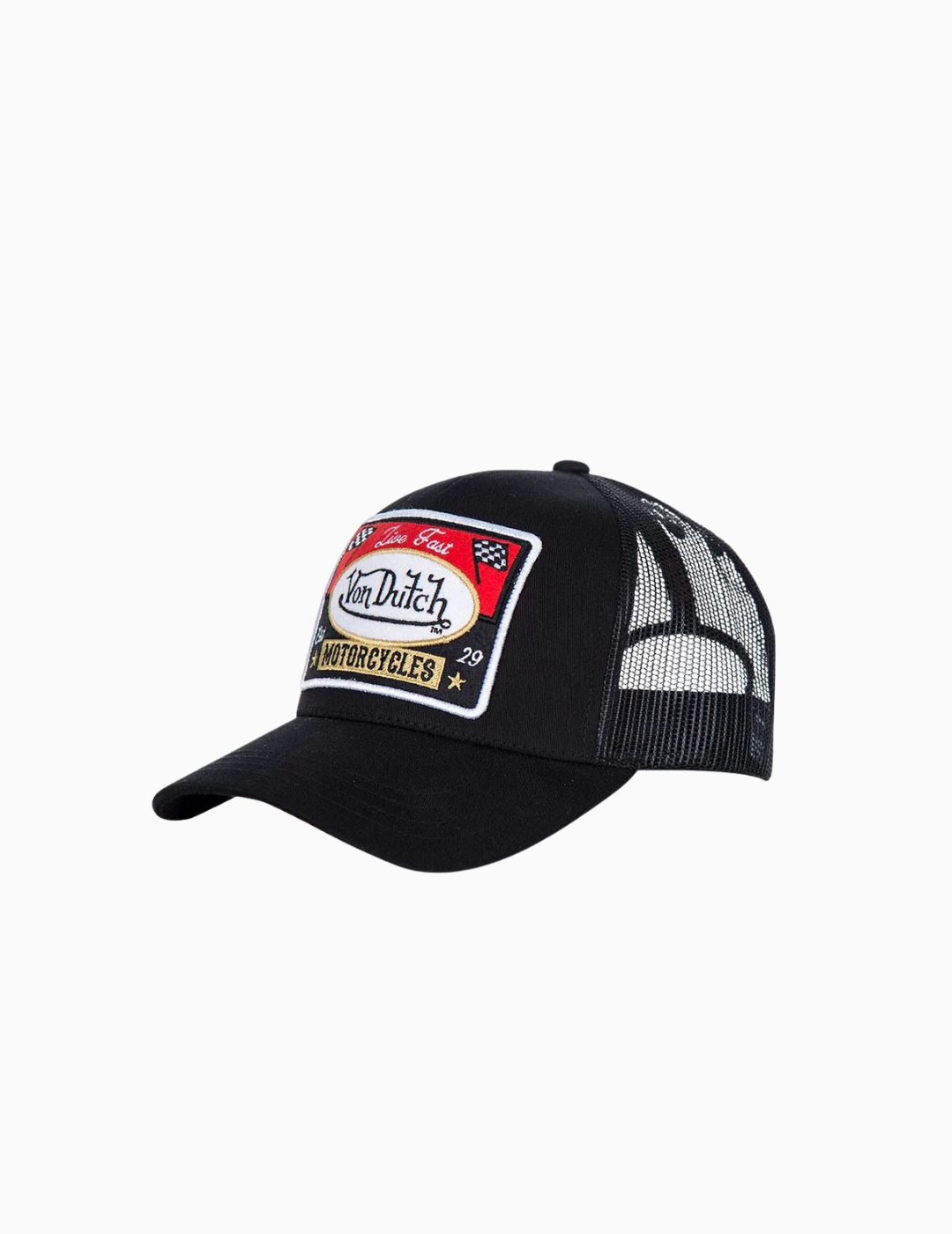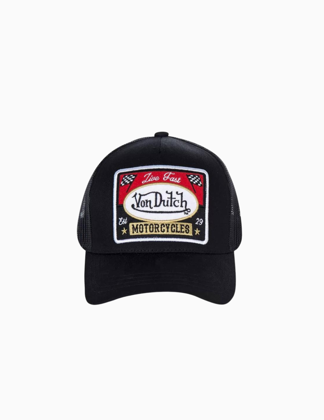 Su diseño en color negro se realza con un llamativo parche frontal de múltiples colores, añadiendo un toque distintivo y retro a tu estilo. Perfecta para un look urbano y desenfadado, esta gorra unisex es el complemento ideal para cualquier atuendo, ofreciendo comodidad y un sello de autenticidad Von Dutch.