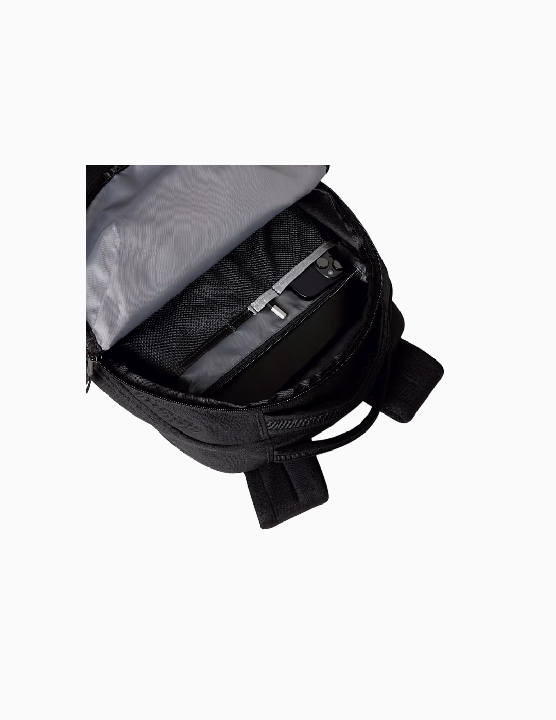 - El compartimento frontal simplifica la organización para el usuario moderno a la vez que mantiene los detalles esenciales para organizar todo, como los bolsillos con cremallera, una funda para tableta y una trabilla para colgar las llaves
