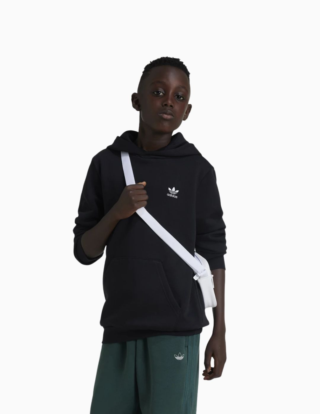 Envuélvete en la comodidad que te brinda esta sudadera con capucha adidas para jóvenes seguidores de la moda. Se ha confeccionado en un cálido tejido de felpa reciclada y cuenta con puños y dobladillo de canalé que retienen el calor corporal. El logotipo del trébol bordado en el pecho rinde homenaje a un legado de creadores que se atrevieron a forjar su propio camino.