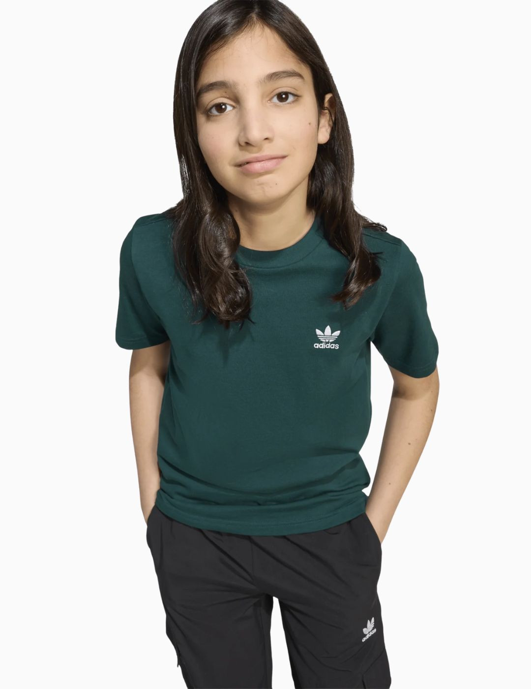 Esta camiseta adidas para jóvenes seguidores de la moda presenta un diseño minimalista que la convertirá en tu nueva prenda favorita. Se ha confeccionado en un tejido de punto muy suave al tacto y luce el logotipo del trébol bordado en el pecho que te conecta con un legado de visionarios y revolucionarios. Los detalles de canalé rematan su silueta clásica.