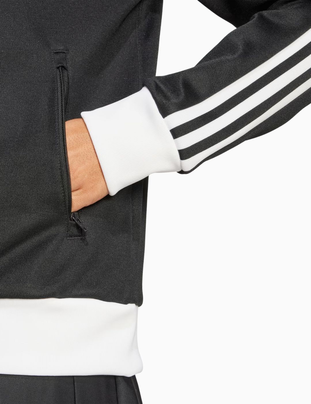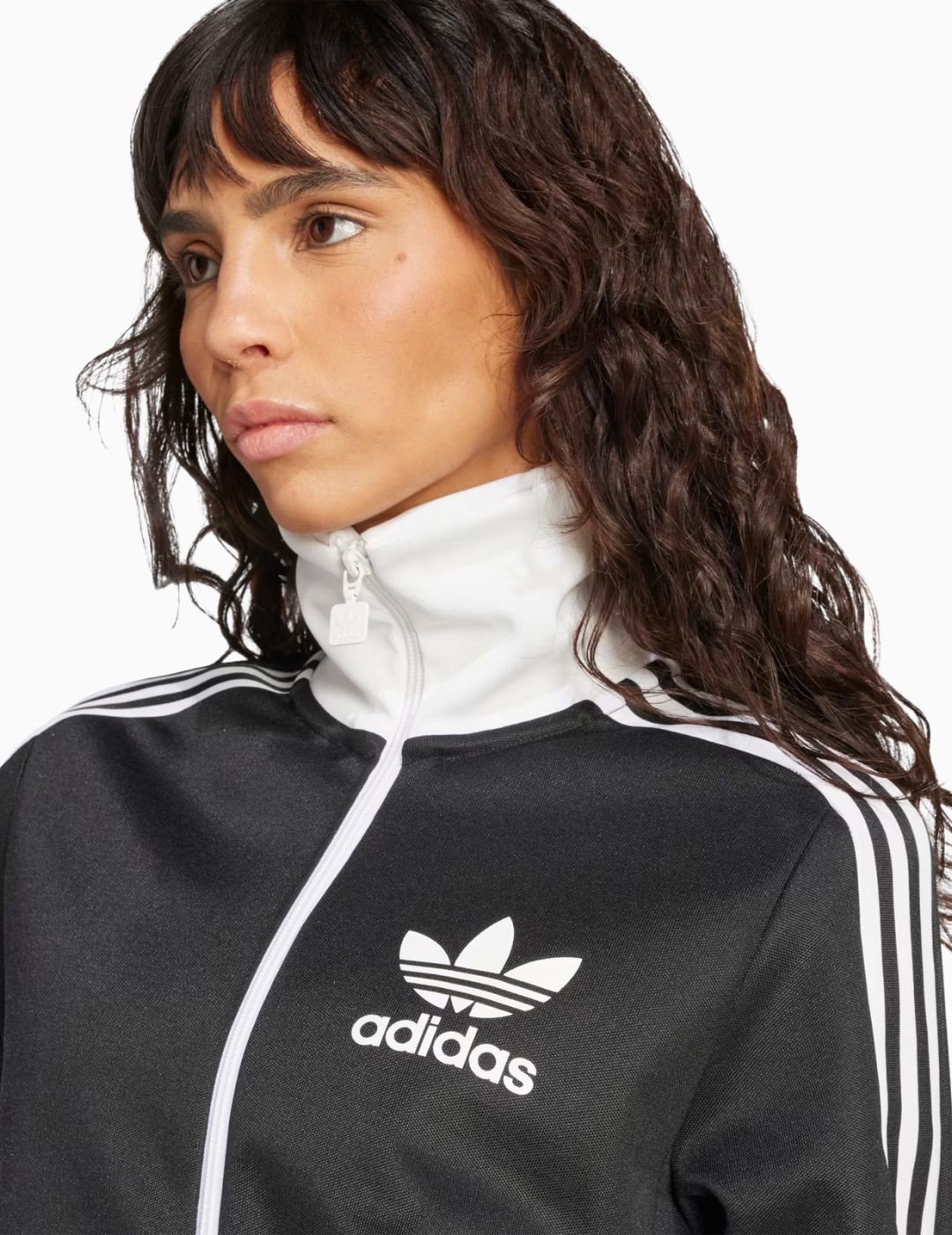 - Cierre de cremallera y cuello en color blanco a juego con los stripes de la manga